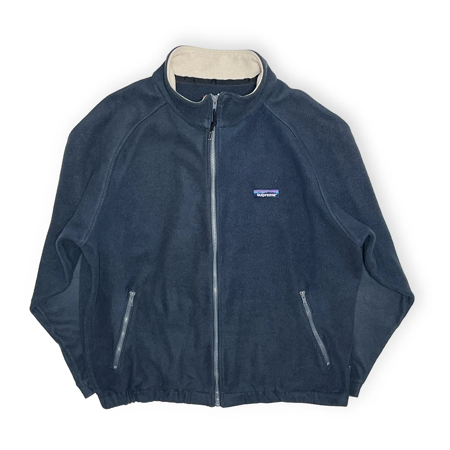 アウトドアブランドの名門、パタゴニア(Patagonia)のロゴをサンプリングしたパッチを胸元にほどこしたフリースジャケットは同店限定アイテムだったこともありオールドシュプリームの中でもかなり希少。